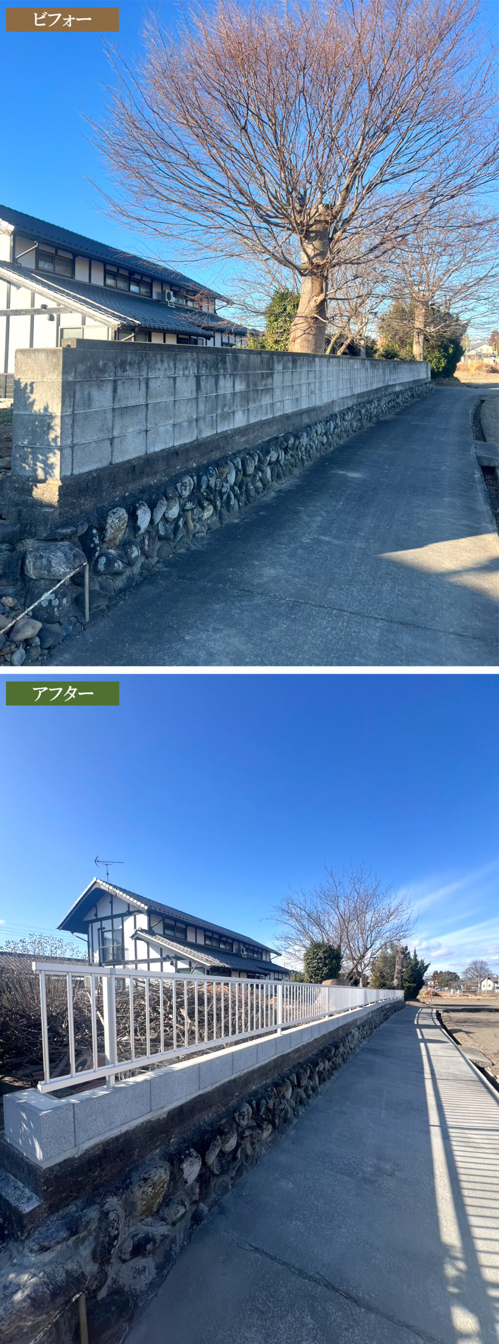 この度、高崎市吉井町にてブロック・フェンスの取付けをさせていただきました。 お見積り・ご相談・ご提案、無料となります。 お気軽にお問合せくださいませ。