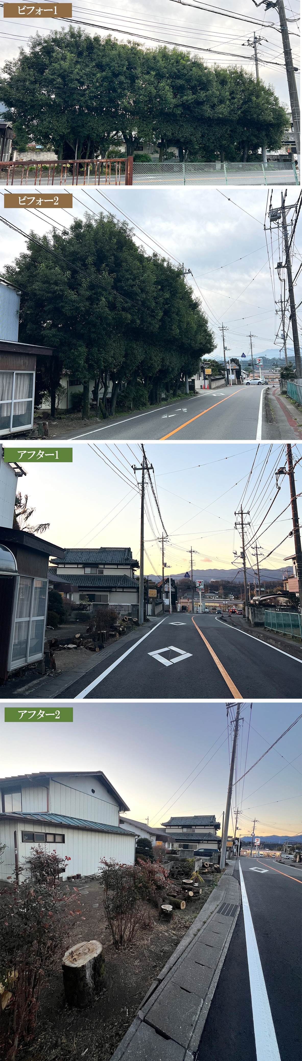 この度、高崎市にて敷地内から道路、電線に枝葉が越境してしまった樹木の伐採作業をさせていただきました。 電線に枝葉が絡んでおりましたが、無事、作業を完了させることができました。 伐採に関するお悩み、ご質問等、御座いましたら、お気軽にお問合せください。御見積り無料です。